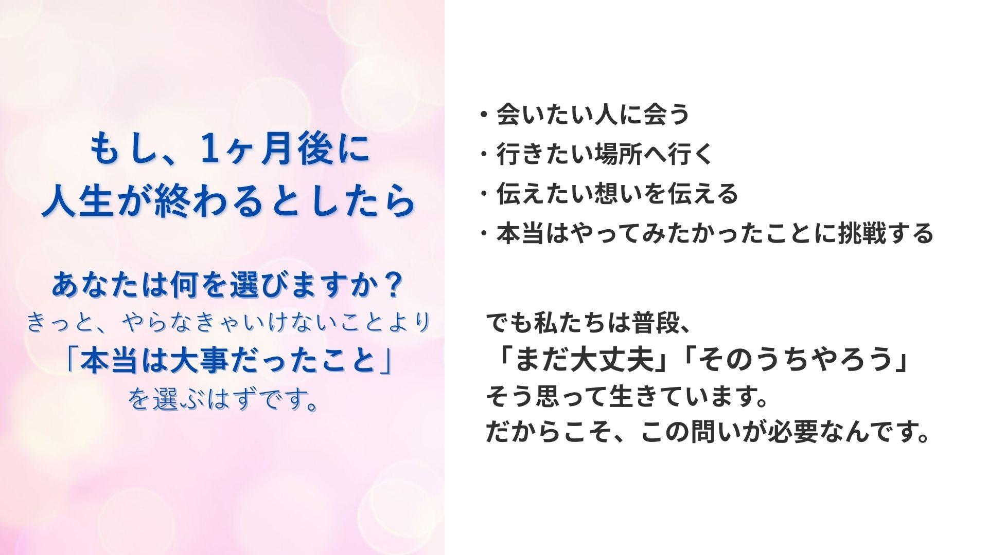 誰とどんな時間を過ごすかが人生だと気づいた参加者たち。